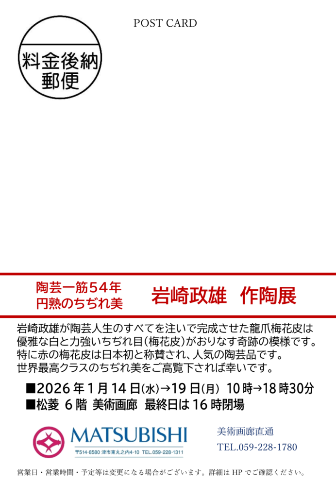 岩崎政雄は、1月17日・18日在廊予定です。よろしくお願いします。
